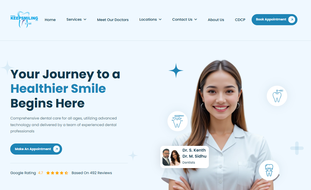 A modern and user-friendly dental clinic website with appointment booking, service details, and a clean, professional design.